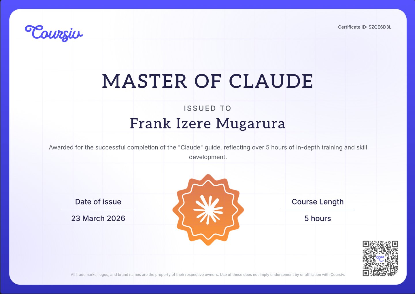 Completed an intense training on using Claude AI for projects and Artfactds