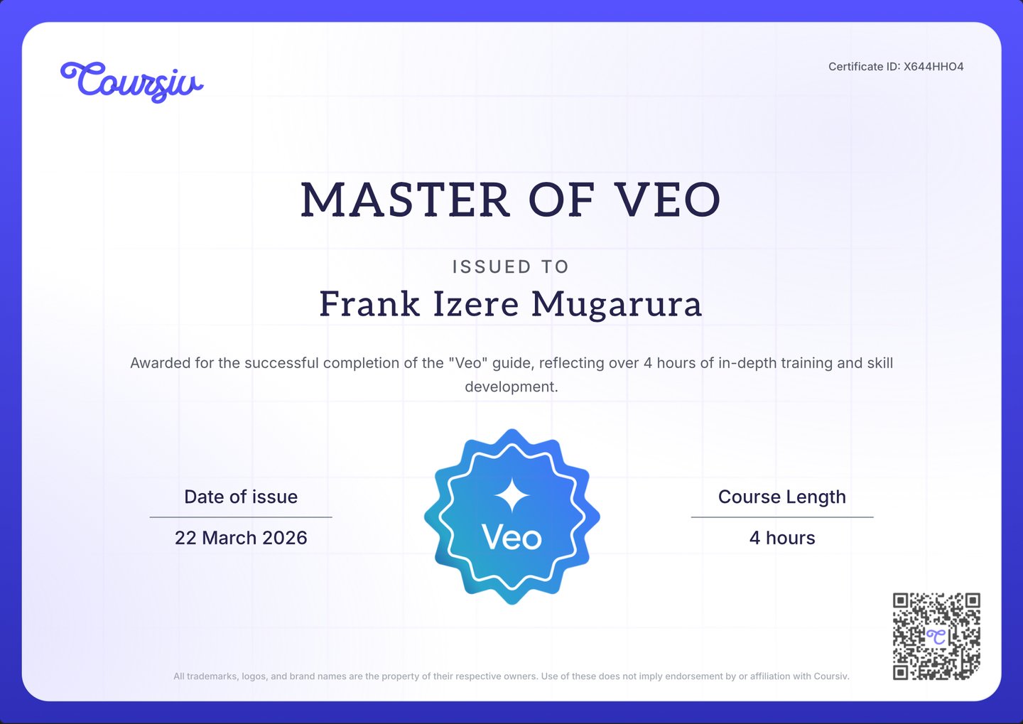 Completed impactful training about video generation using AI, it involved character creation, composition, lighting,sound and editing